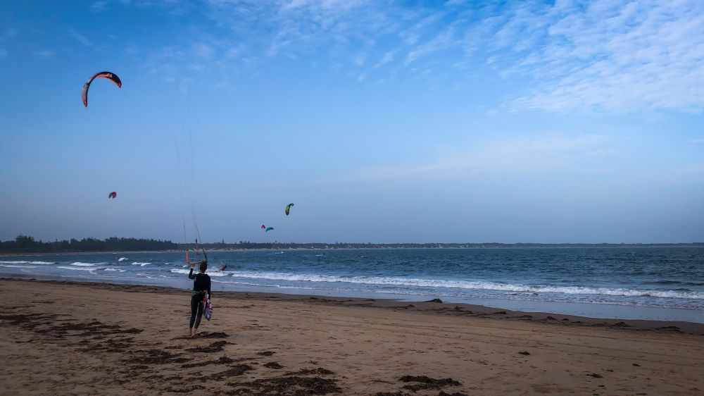 Etwas weiter südlich am Galu Beach hast du noch etwas mehr Platz und gefühlt etwas stärkeren Wind. Ja, es sind nur ca. 5 km, aber während ich unten 3-5 Kites auf dem Wasser gesehen habe, hatten wir Probleme den 15 qm großen Kite in der Luft zu halten. Auch hier findest du ebenfalls eine Kiteschule, die Bar des dort ansässigen Hotels Bidi Badu*, jede Menge Sitzmöglichkeiten und Liegen, um dich zwischen den Kitesessions etwas auszuruhen.